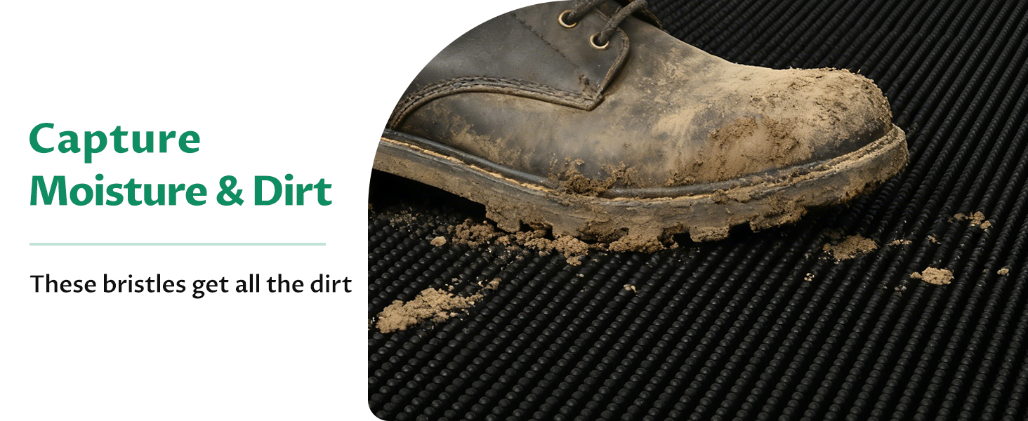 Boots Scraper and Dirt Trapping: Deep textures and absorbent grooves trap dust, mud and gravel from shoe, keep floor dry and clean