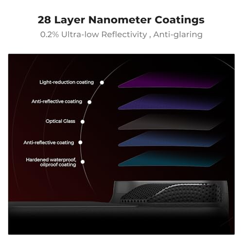 【Optical Glass with Nano-coating 】ND, PL filters made of high-quality AGC optical glass for clear and sharp images. Features 28-layer coating to reduce glare and enhance color and contrast in your shots. Blackened frame surface to minimise reflections from filter itself.