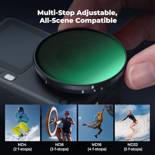- [Designed for Osmo Action 6] This Variable ND filter specifically for the DJI Osmo Action 6. It enables real-time exposure adjustment, ensuring stable footage without the need for frequent filter swaps. It effectively reduces light intake to prevent overexposure and preserve crucial details.