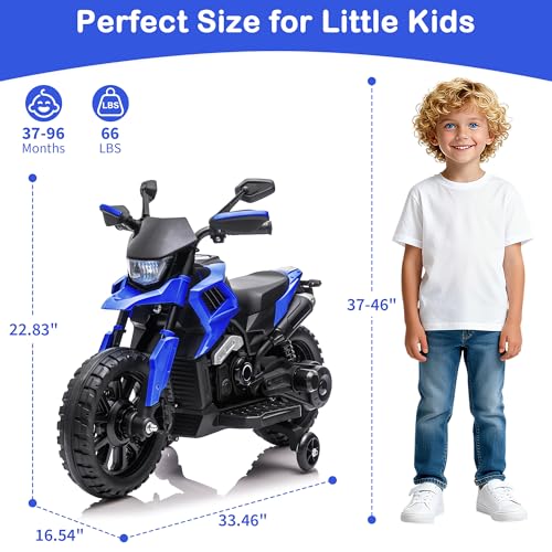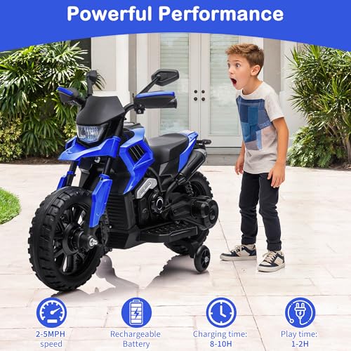Kids Motorcycle, 6v Ride on Motorcycle w/Training Wheels, Headlight & Music. 2-5Mph Speed, Great Gift for Kids Boys & Girls