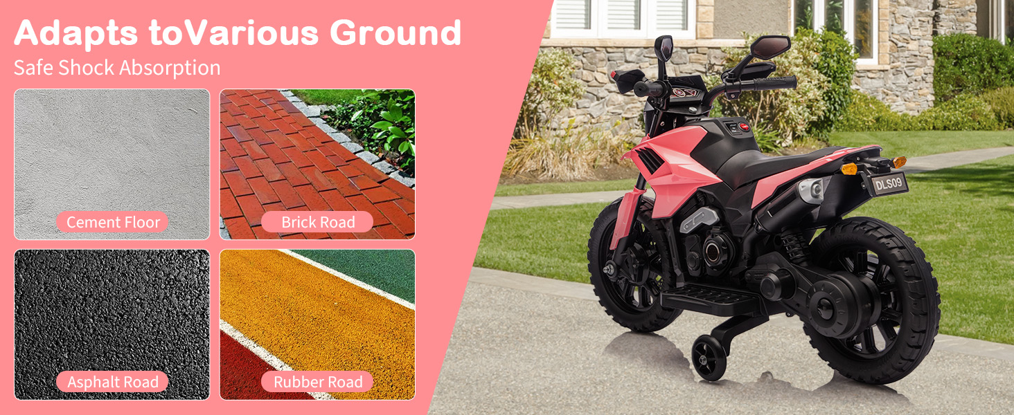 Ride Freely on Various Ground: With resistant wheels, this kids’ motorcycle works on brick roads, wood floors, asphalt, plastic runways and more.