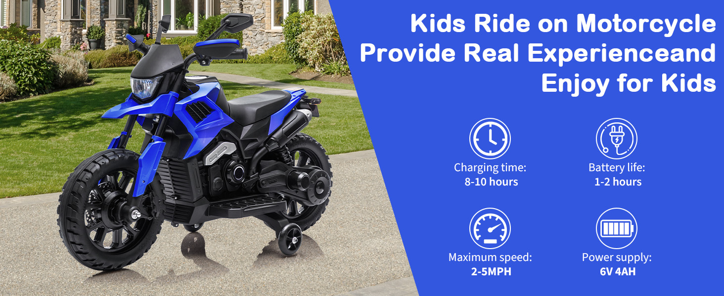 Kids Motorcycle, 6v Ride on Motorcycle w/Training Wheels
