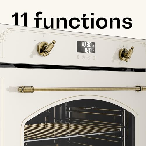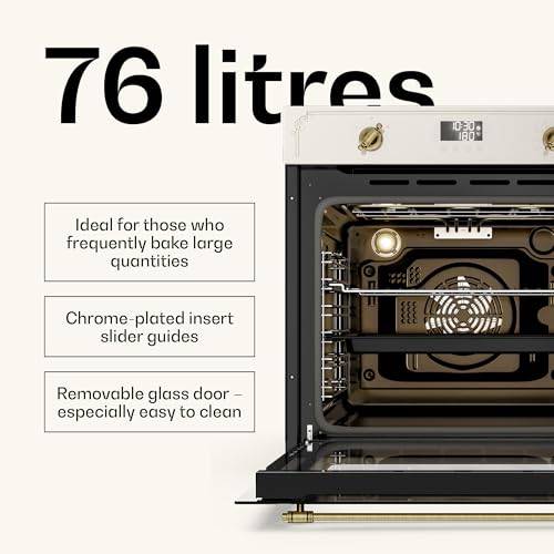 Klarstein Victoria Pyro Electric Oven – 76L Built In Oven, Retro Design, 11 Modes, Pyrolytic Cleaning, Enamel Interior, Quadruple Glazing, Energy Class A, Integrated Single Oven, Cream