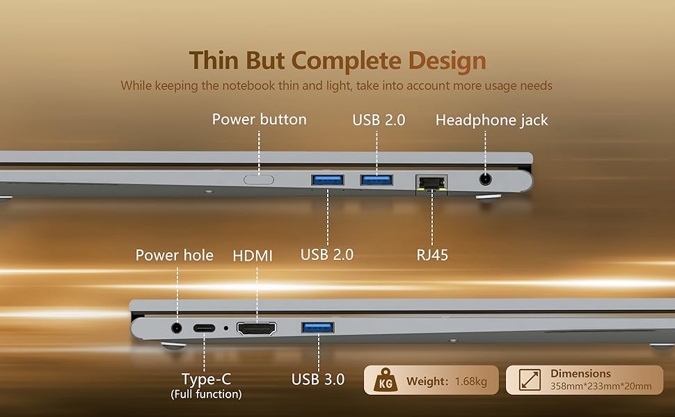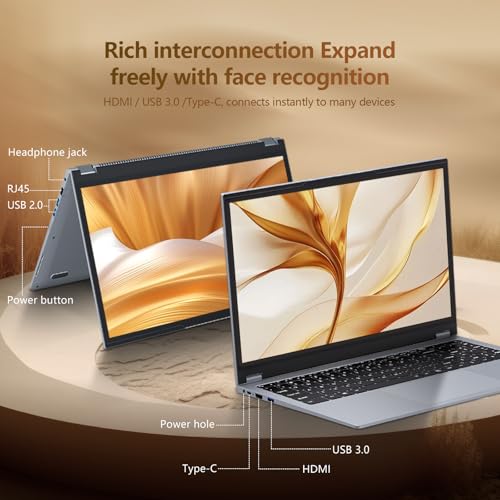 - 【Rich Interfaces & Lightweight Laptop】This laptop 2 in 1 has RJ45/Type-C/USB 3.0/Mini HDMI/USB 2.0*2 and other ports to provide you with a variety of options for connecting external devices. At the same time, this laptop is also equipped with a full-size backlit keyboard and a large-size touchpad, which can still be accurately operated in low-light environments. The 15.6inch laptop is designed with an ultra-thin shell to ensure a stylish and novel appearance and excellent portability. The laptop aslo with WiFi5 and Bluetooth 5.1 as well as a 5000mAh battery and a 100W HD webcam.