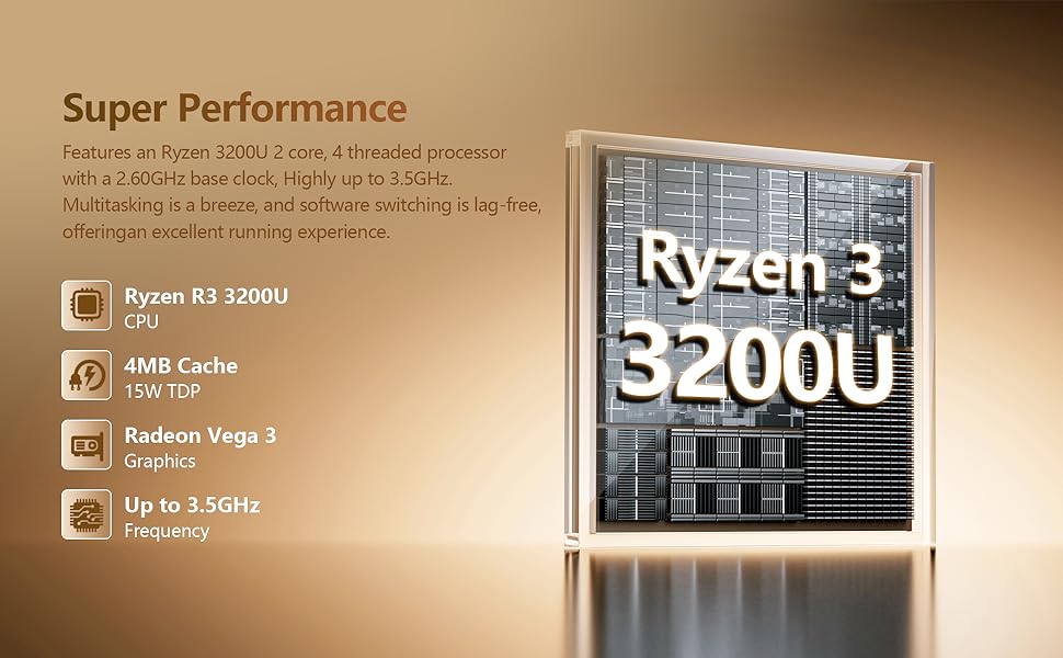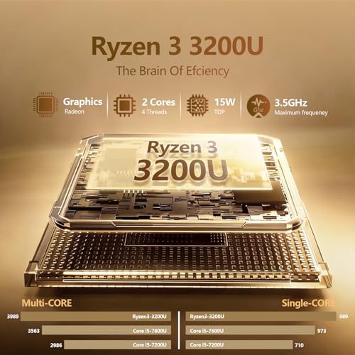 - 【High-performance Processor CPU R3-3200U & GPU】The 15.6 inch laptop 2 in1 is equipped with Ryzen 3 3200U and Radeon graphics. And the Ryzen 3 3200U processor has14nm manufacturing process, main frequency 2.6GHz, up to 3.5 GHz. With a power consumption of just 15W, truly achieve low power consumption and high performance. This powerful Win11 laptop also using the graphics card Radeon Vega 3 Processor Graphics, which the basic frequency is 1200MHz. It can seamlessly handles a variety of complex applications, significantly increasing work efficiency.