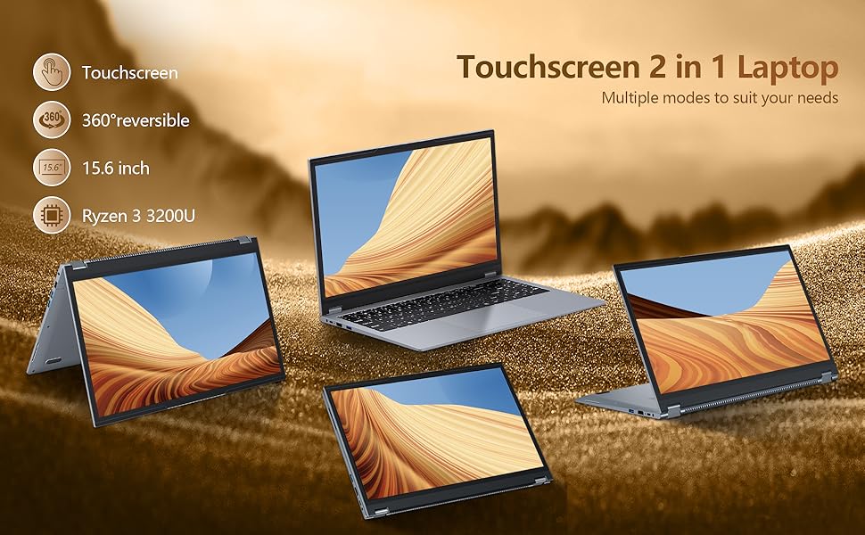 Laptop 15.6 inch, 2 in 1 L aptop AND Ryzen 3 3200U CPU, Win