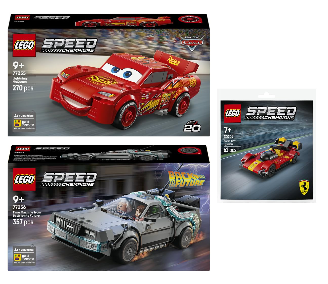Lego Set of 3: 77255 Lightning McQueen, 77256 Time Machine from Back to the Future & 30709 Ferrari 499P Super Sports Ca