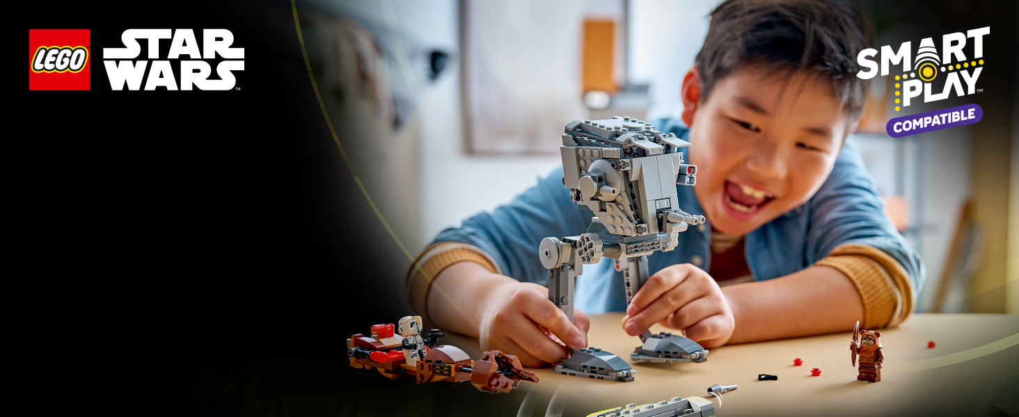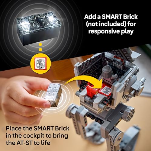 - INTERACTIVE STAR WARS BUILDING TOY – This LEGO SMART Play Compatible set features an AT-ST with opening roof and stud shooter, a speeder bike, 2 SMART Tags, a SMART Wicket minifigure, plus AT-ST and Scout Trooper LEGO minifigures