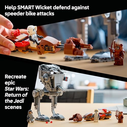 - SCREEN-FREE PLAYTIME – Join friends and family to recreate iconic scenes: role-play as Wicket sneakily takes the speeder bike from the Scout Trooper and battles the AT-ST with the driver minifigure inside