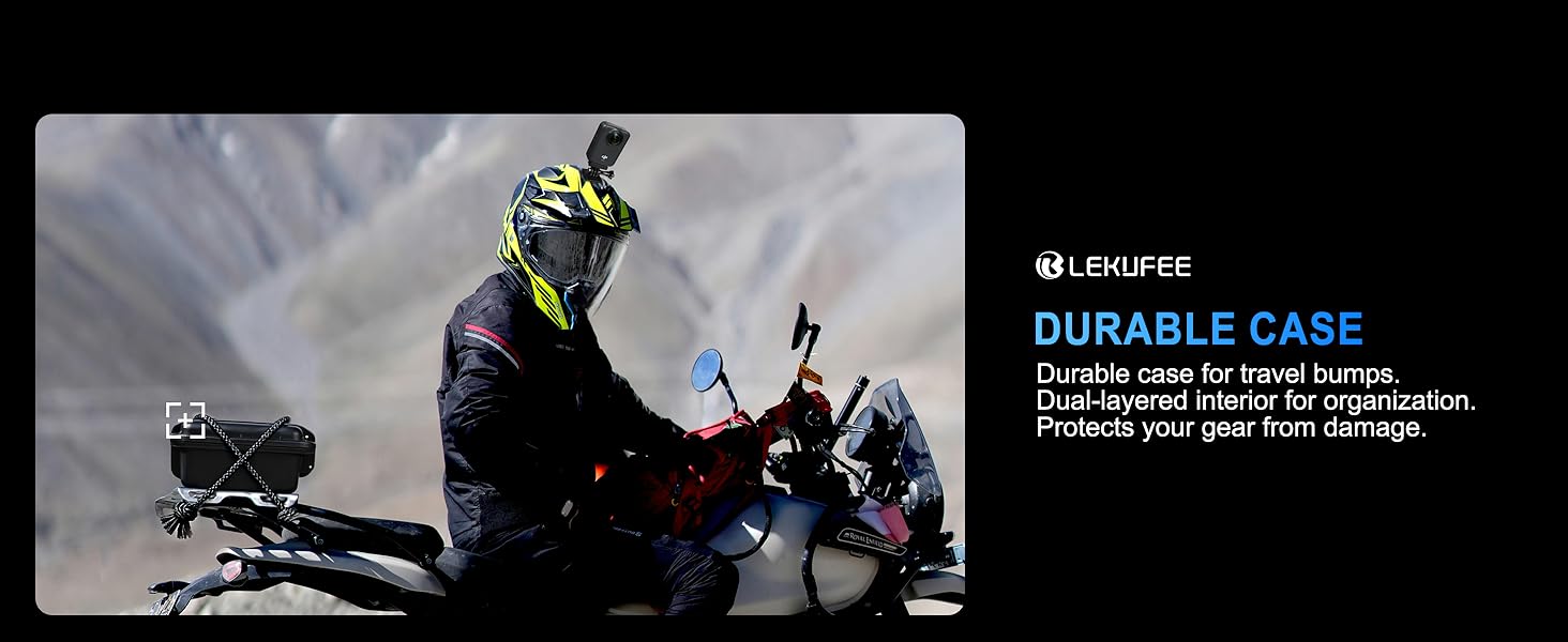 - Double-Layer Storage: 1x DJI Osmo 360 action camera,6 x Battery (Max) ,Osmo Action Battery Case,DJI Mic 3 / Mic 2 or Mic Mini Charging Case,SD Cards x2,Osmo 1.2m Invisible Selfie Stick,Charging Handle, Adapter Mount, Easily store and protect your camera accessories organized during travel or transportation.