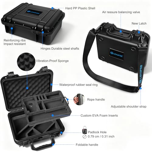 LEKUFEE Portable Waterproof Hard Case for DJI Osmo 360 Camera,Adventure Combo, Action Camera, Battery, Charger, DJI Mic 3/2/Mini, More Accessories(Case Only)-Black