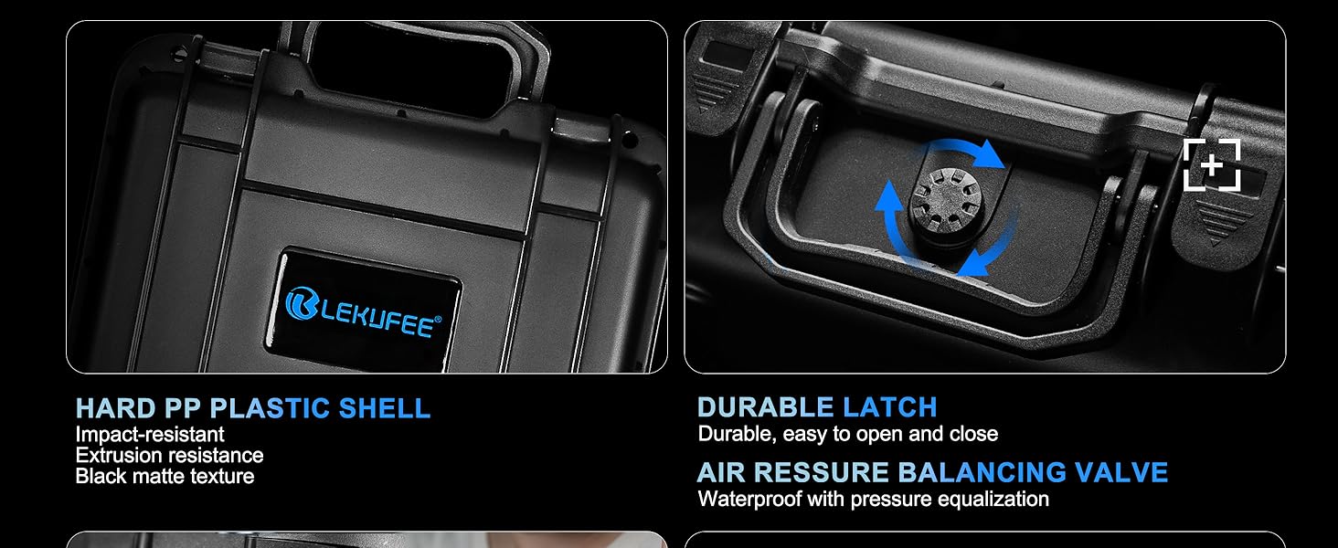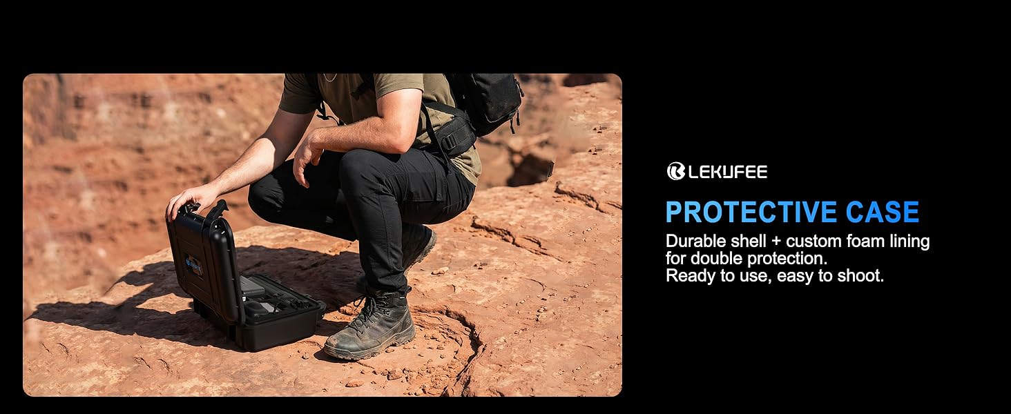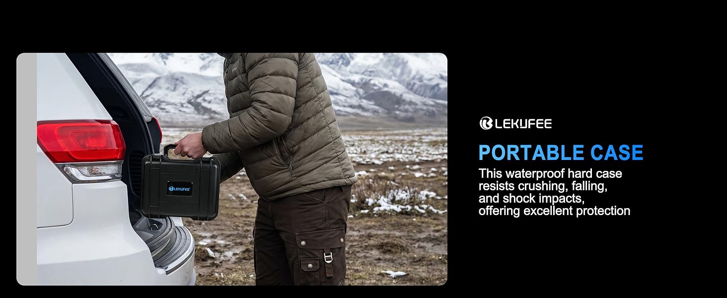 1x Lekufee Waterproof Carrying Case; 1x Custom Double Layer EVA Insert; 1x Shoulder Strap; 1x Instruction Manual.