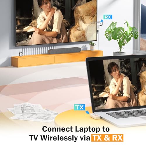 【Plug & Play】 Both the wireless USB-C transmitter and the HDMI receiver are pre-paired before shipping. Simply connect the USB-C transmitter to the USB-C port of your PC/laptop or other USB-C device, the receiver (RX) to the HDMI input of your TV/projector/display, and turn on the device. After 5-8 seconds, the devices will automatically synchronize. It's so easy and time-saving—no more complicated settings or steps.