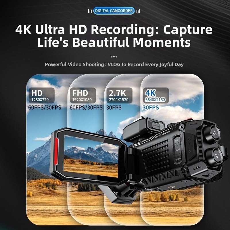Lightweight 4K UHD Digital WiFi Camcorders, with 50X Optical