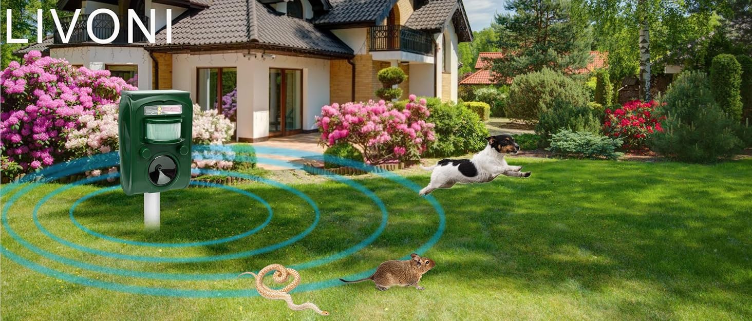 Livoni Cat Repellent Foxes Repellers, Ultrasonic Solar Battery Operated Animal Cat Deterrents Scarer for Gardens, Waterproof Outdoor with Ground