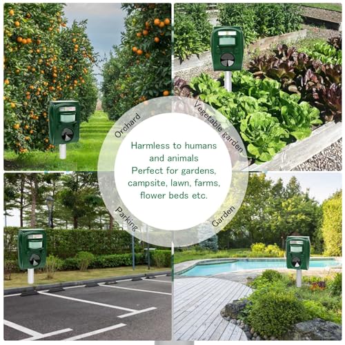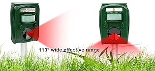 - Infrared Sensor: Infrared PIR motion sensor angle up to 110 degrees and detection range up to 10m away activating the animals repellent to emit a high frequency sound.