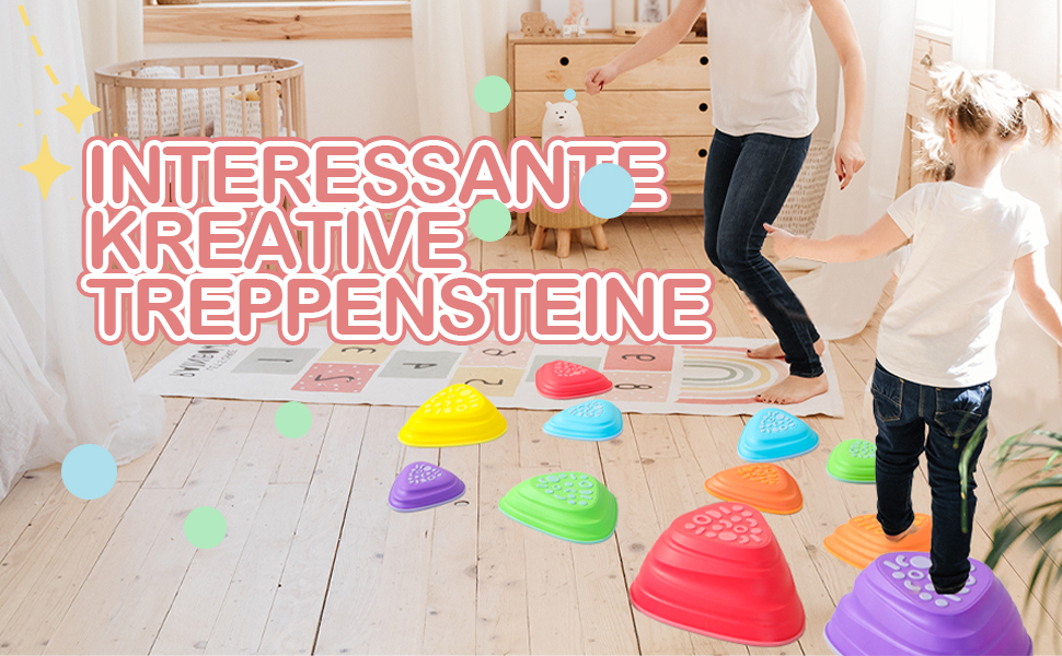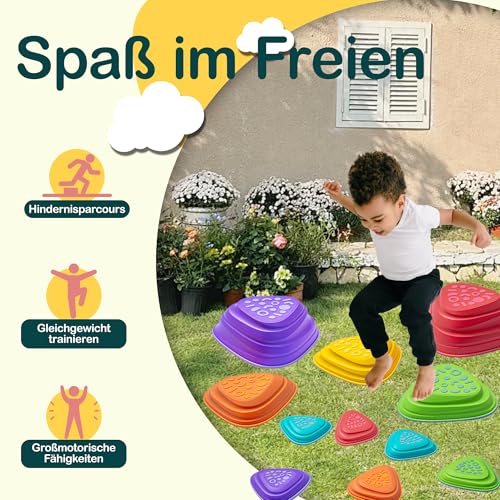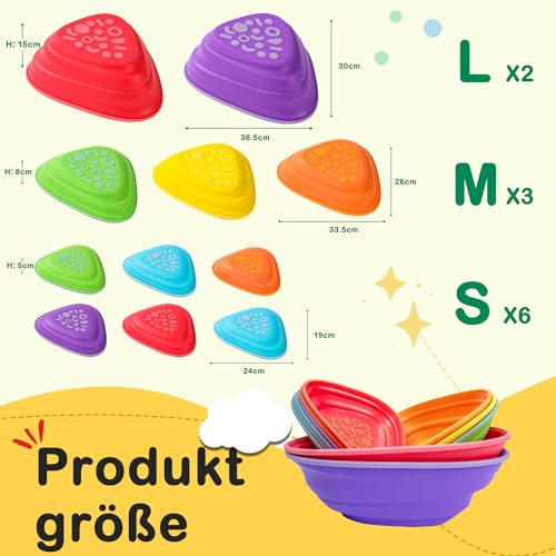 「Endless Ways to Play & Ideal Daily Exercise Equipment」 1 set of our balance stepping stones includes 5pcs blocks with 5 sizes for different ages. Kids can walk, stand, jump, or climb on the stepping blocks, obstacle courses, and various configurations.