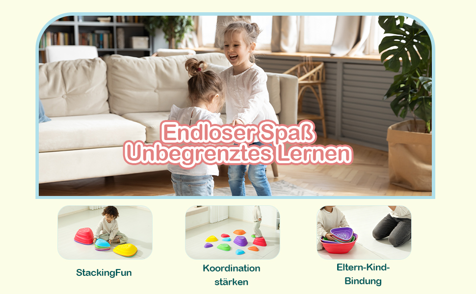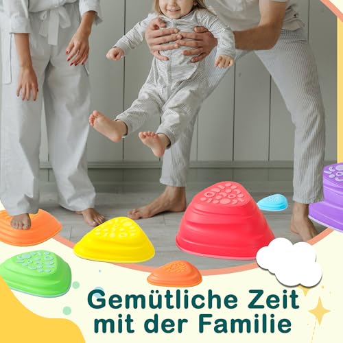 「High-Grade & Enough Material, Durable & Strong Bearing」 Using non-toxic and odorless healthy PP material, it is even more durable than natural stone toys, so please feel relief to place them outside. The max load is 220lbs, also suitable for adults, making this balance training kit an excellent parent-child game toy.