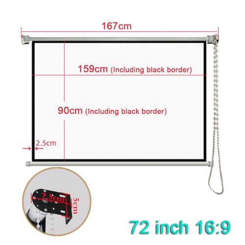 Manual Pull Down Projector Screen 40″ 50″ 60″ 72″ Home Theater Movie Screen 16:9 4:3 4K Wall Mounted Projection Screen For Indoor Outdoor(72 Inch 16:9)
