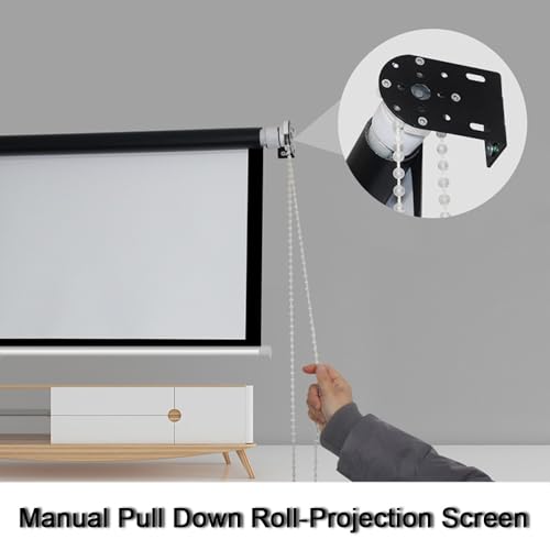Manual projector screen, portable projection screen, can be used in home theater, living room, bedroom, office, classroom, etc., easy to roll up to save space.