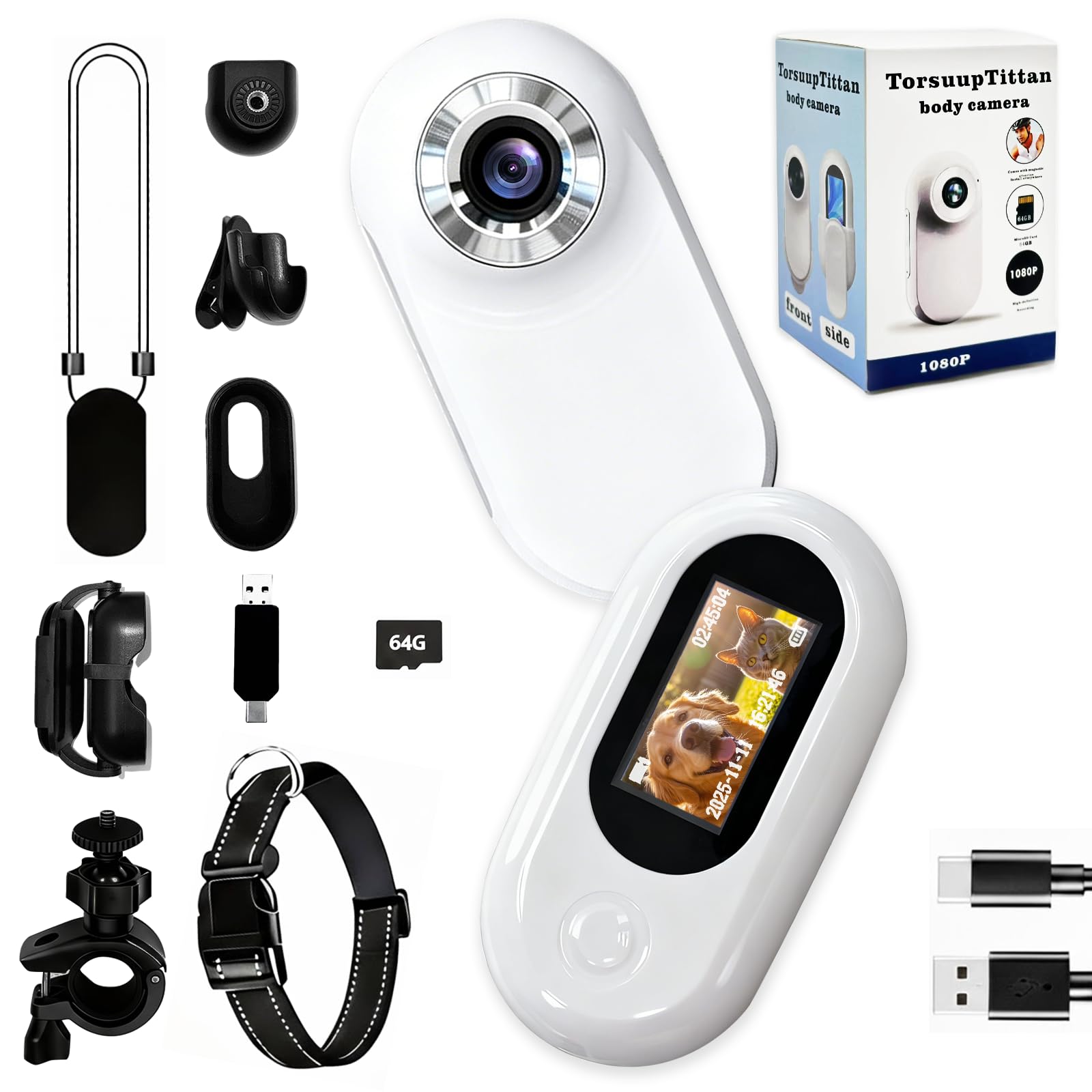 - 3️⃣ Complete accessories & easy to use Each Torsuup sport camera set includes: camera body, magnetic lanyard, motorcycle/bike mount, pet strap, hat clip, USB adapter, 360° back clip, silicone case,user's manual, charging cable, and a 64GB memory card. Everything you need to start recording right out of the box—perfect as a mini camara para grabar contenido for travel or sports.