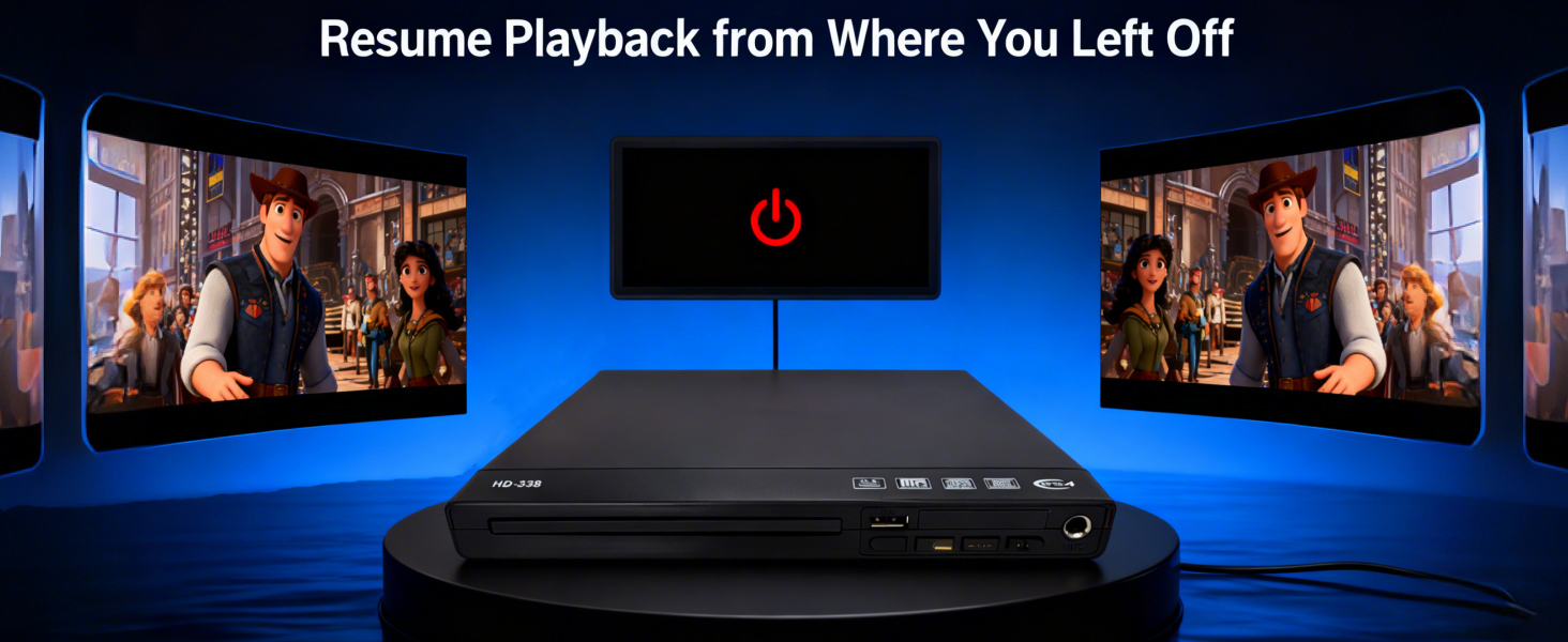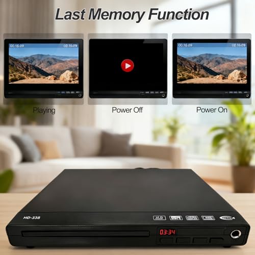 Convenient Memory Playback Features: Never lose your place with the breakpoint memory function, which automatically resumes playback from where you stopped. Combined with anti-skip technology and a quiet, updated chip, this DVD player with HDMI ensures a smooth, reliable, and interruption-free viewing experience every time.