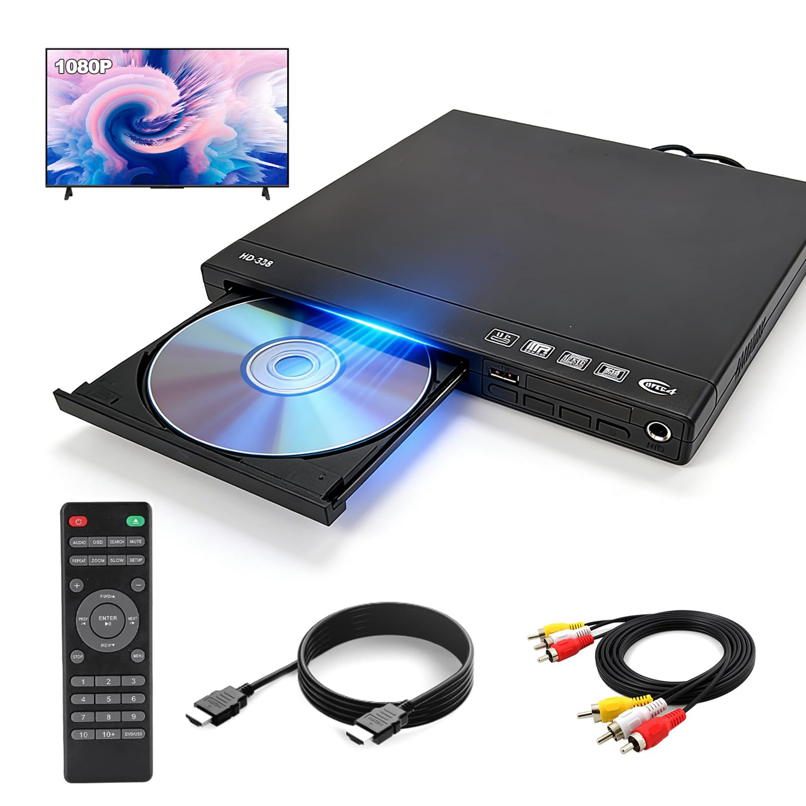 Compact Design & Perfect Gift: This compact and space-saving DVD player comes as a complete set, including 1x player, 1x HDMI cable, 1x AV cable, 1x remote control, and a user manual. Its convenient design fits easily on any shelf, making it the perfect media center or gift for use with smart TVs and home cinema systems, and it also makes an excellent gift for friends and family.