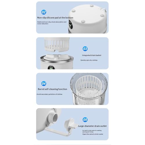 - Quiet Function Enabled: The portable washer ensures silent washing performance with advanced noise reduction technology, allowing for peaceful night use and undisturbed laundry cycles in shared living spaces