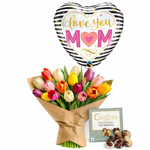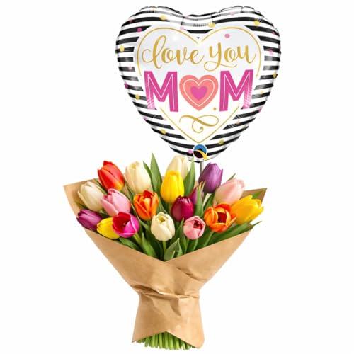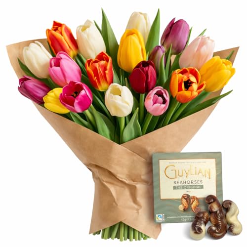 Mixed Colour Tulip Bouquet Fresh Cut Seasonal Flowers With Chocolate or Balloo