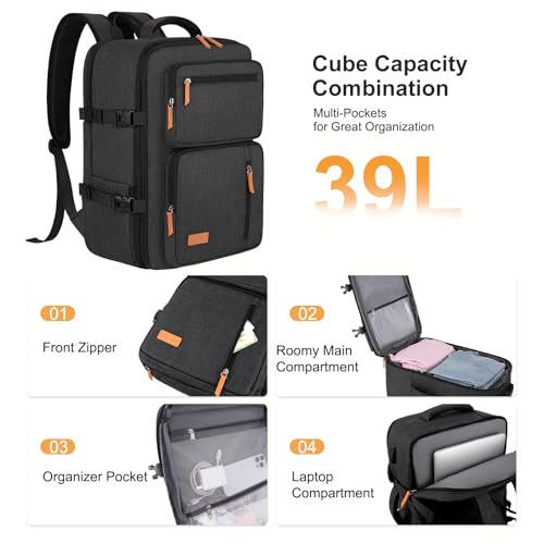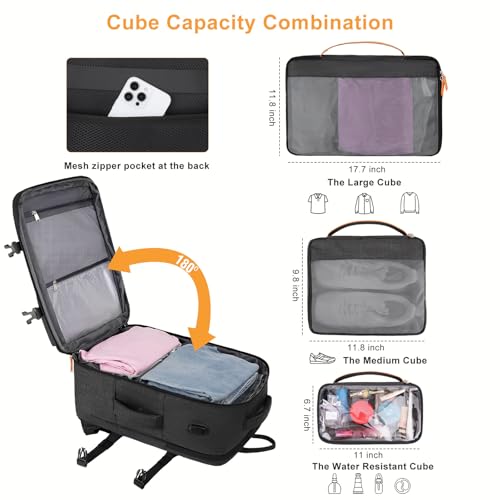 MOSISO 40L Travel Backpack for Women&Men, Flight Approved Carry on Daypack with USB Charging Port&3 Packing Cubes, 17-17.3 inch Expandable Suitcase Laptop Backpack for Office Work Travel, Black
