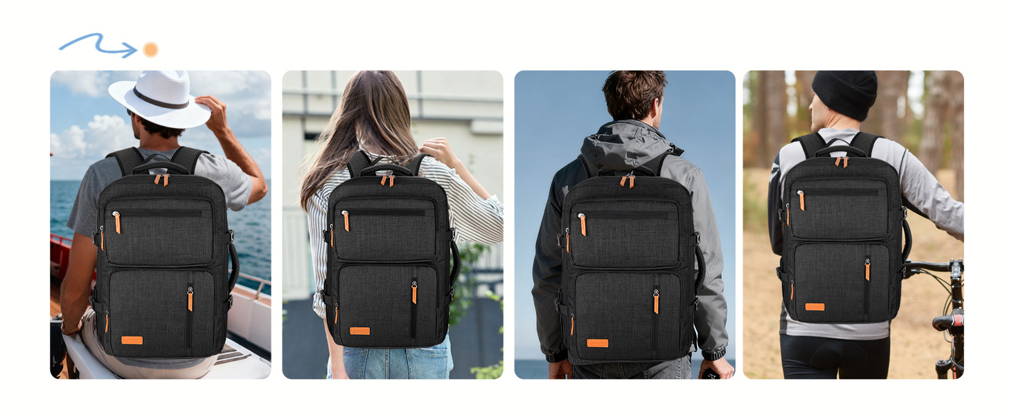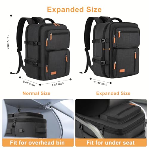 Expandable Travel Backpack. Dimensions of this backpack is 17.72 x 11.81 x 9.45 inches / 45 x 30 x 24 cm (L x W x H). Expanded dimensions are 17.72 x 11.81 x 11.42 / 45 x 30 x 29 cm inches (L x W x H). This travel backpack meets the requirements of airlines, it can easily fit under the seat or in the overhead compartment, saving time for checked luggage, it is the best personal item for air travel.