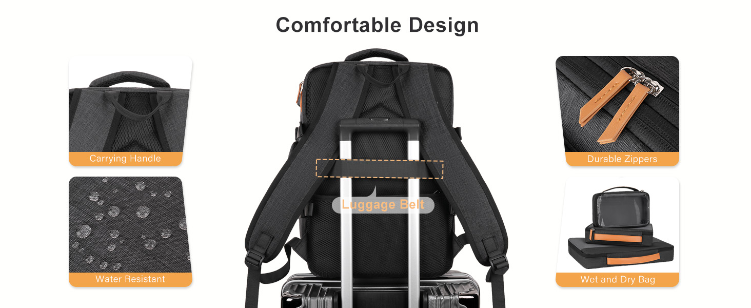 Convenient Luggage Belt & handles: Considerate design is the back trolley suitcase belt for ease use during business trip. It is really convenient for your happy journey to any where. There are handles on the top and side of the backpack for easy access. It is suitable for work, business trips or daily travel.