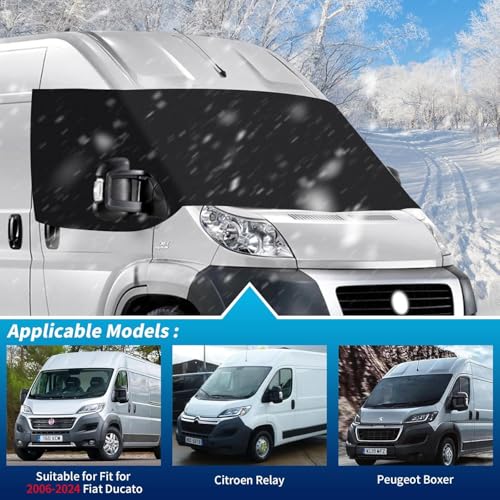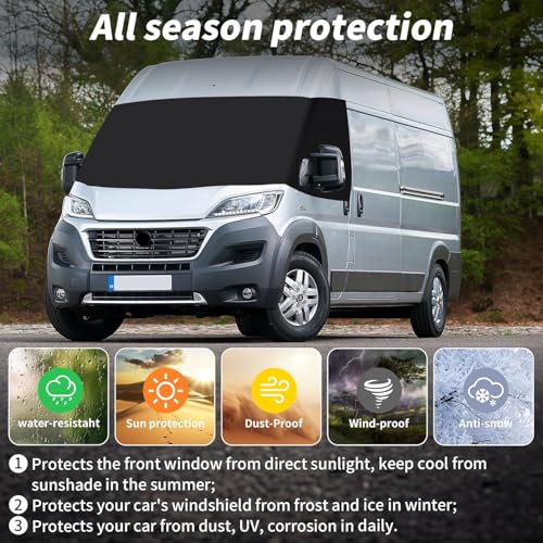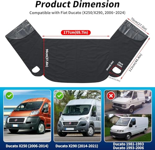 ✅【Extended Length for Full Coverage】– At 175 cm in width, our windscreen cover accommodates varying windshield dimensions across Fiat Ducato X250/X290 (2006-2024), Peugeot Boxer, and Citroën Relay models. No more gaps or insufficient coverage!