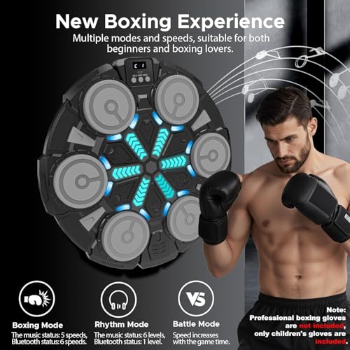 Music Boxing Machine, Interactive Rhythm Boxing Trainer with LED Lights, Boxing Gloves and Bluetooth Speaker, Wall-Mount Punching Pad, Smart Fitness Home Workout Equipment for Adults and Kids