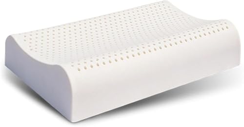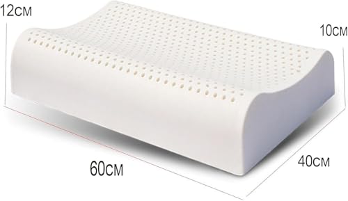Natural Latex Pillow, Organic Latex Contour Pillow, Cervical Support Pillow with Ergonomic Design, Helps Relieve Neck, Latex Foam Pillow for Sleeping, Bedroom, Office (White-A)