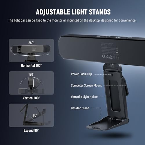 【Versatile 6W Screen Light Bar】 NEEWER L10 LED lightbar as fill, key lighting or backlight can be mounted over desktop computer or curved monitor for video conferences, streamer game streaming, podcast, online teaching, for YouTube TikTok social media films recording, makeup artist filming, book reading, etc. Simply power the small task lamp for desk via a USB port on your computer or connect it to a wall socket using the included power cable