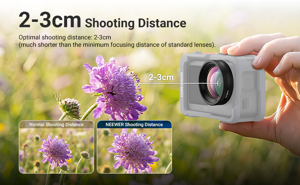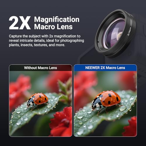 【2X Magnification Macro Lens】 Magnifies subjects by 2x to reveal intricate details at a range of 2-3cm (much shorter than the minimum focusing distance of standard lenses), ideal for plants, insects, textures, and more