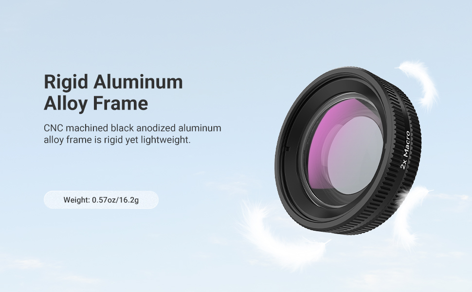 【Rigid Aluminum Alloy Frame】 CNC machined black anodized aluminum alloy frame is rigid yet lightweight for outdoor photography. Installation is quick and easy—simply remove the original lens and screw this one on