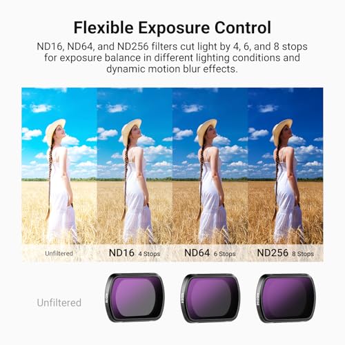 【Flexible Exposure Control】 ND16, ND64, and ND256 filters cut light by 4, 6, and 8 stops for exposure balance in different lighting conditions and dynamic motion blur effects