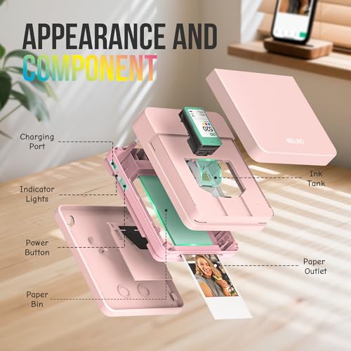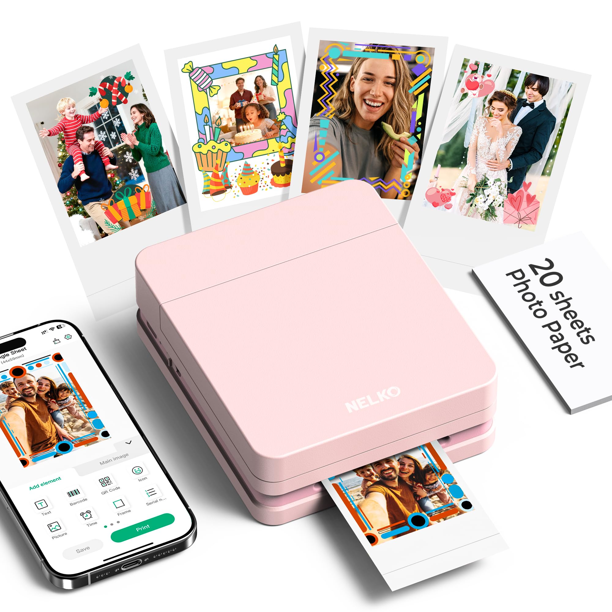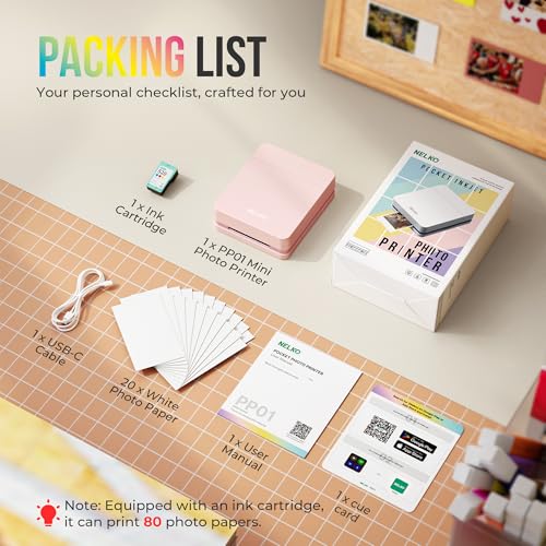 Portable Photo Printer: Upgraded version PP01 photo printer utilizes ink imaging technology. It produces vivid, full-color prints on sticky-backed photo paper that is smudge-proof, water-resistant, and tear-resistant. The Nelko photo printer is pocket sized and weighs only 0.6 pound, making it easy to carry for school activities, travel, field trips, and anywhere you go. We can print color photos at any time to record beautiful moments