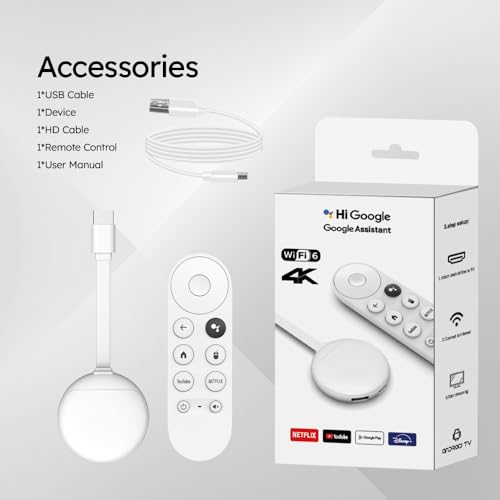 New TV Stick Google TV 4K Media Streamer, 4K UHD / 60Hz Ausgang, Google Assistant Built-In, Dual-Band Wi-Fi 5, HDMI-Anschluss, Atmos Unterstützung, Snow Orginal tv stick box