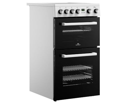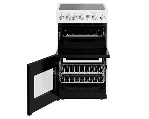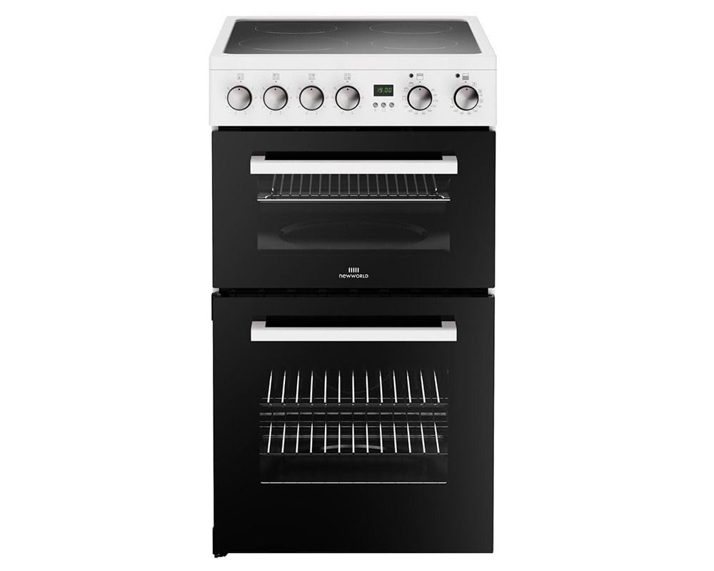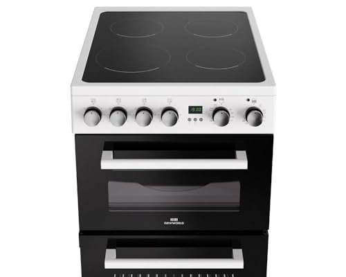 New World NW FDO 444412057, 50E,50cm, LED Clock & Programmable Timer, Electric, Four Zone Ceramic Double Oven Freestanding White Cooker- HxWxD (90x49x59cm) – 1 Year Warranty [Energy Class A]