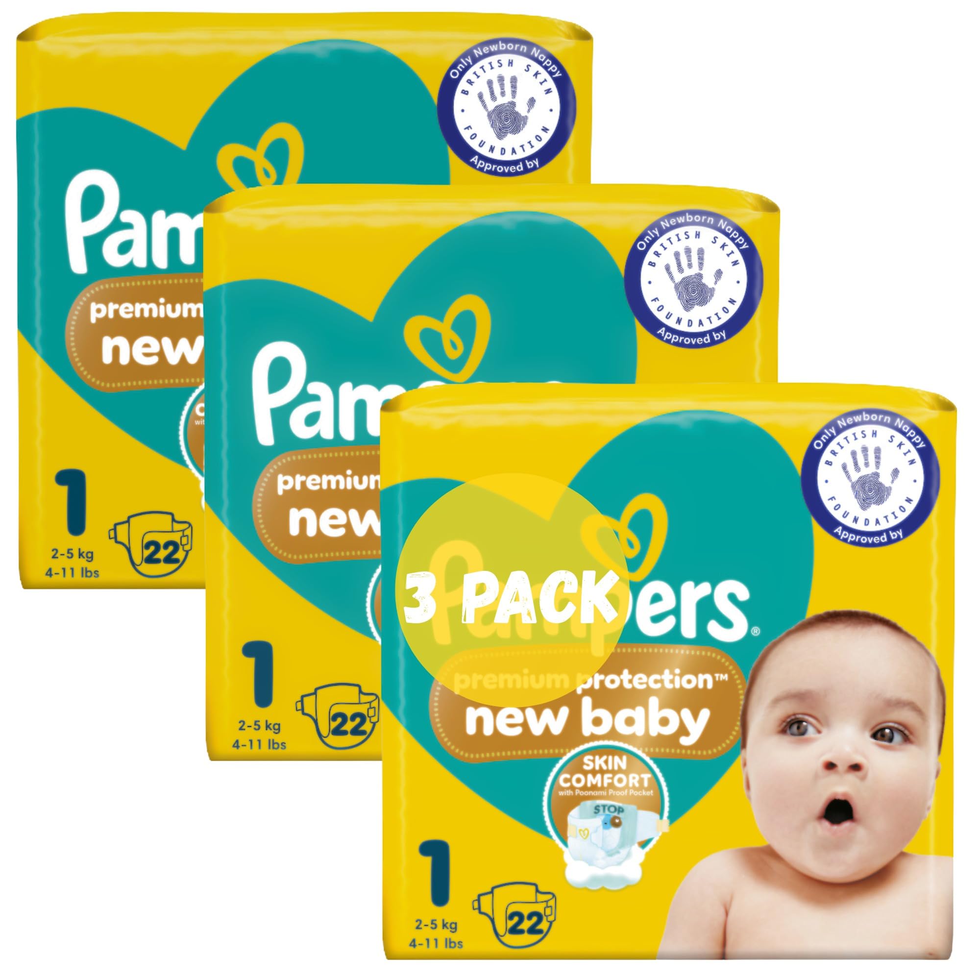 Newborn Nappies Bundle – 3 Packs of Size 1 Premium Protection New Baby, Total of 66 Size 1 New Born Nappies