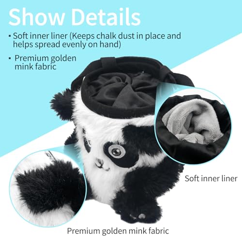 - 【Durable & Hygienic Design】Crafted from premium golden mink fabric, this chalk bag is exceptionally soft and skin-friendly. The interior is fully lined with cozy fleece for enhanced comfort and efficient chalk retention. A standout feature is the completely reversible design—both the inner liner and pocket can be turned inside out for easy and thorough cleaning. With its adorable panda shape, it’s a perfect companion for women and children, making every workout more enjoyable.