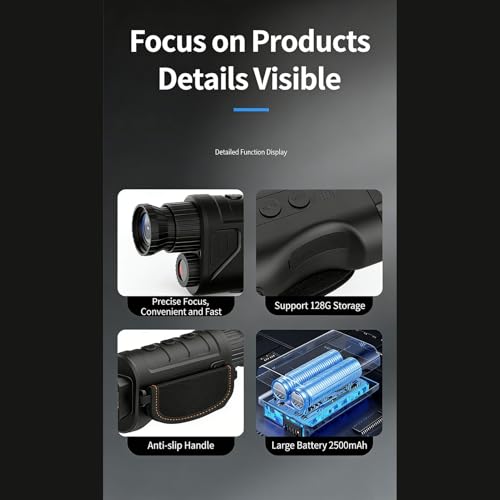 - Long Battery Life: Equipped with a large 2500mAh battery for up to 8 hours of continuous use. Digital monocular telescope supports screen off operation and charging while in use, ensuring uninterrupted outdoor exploration.