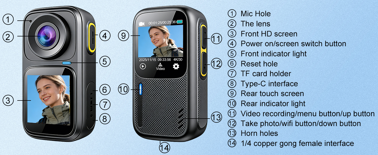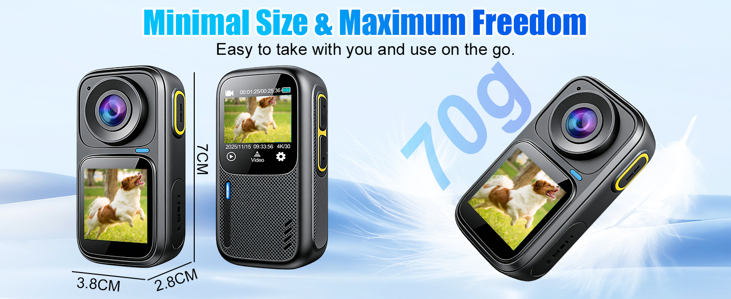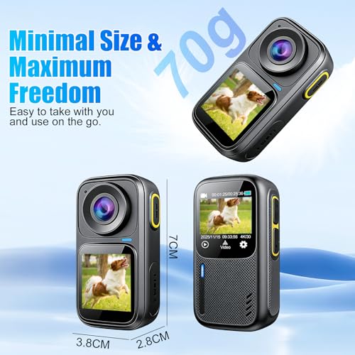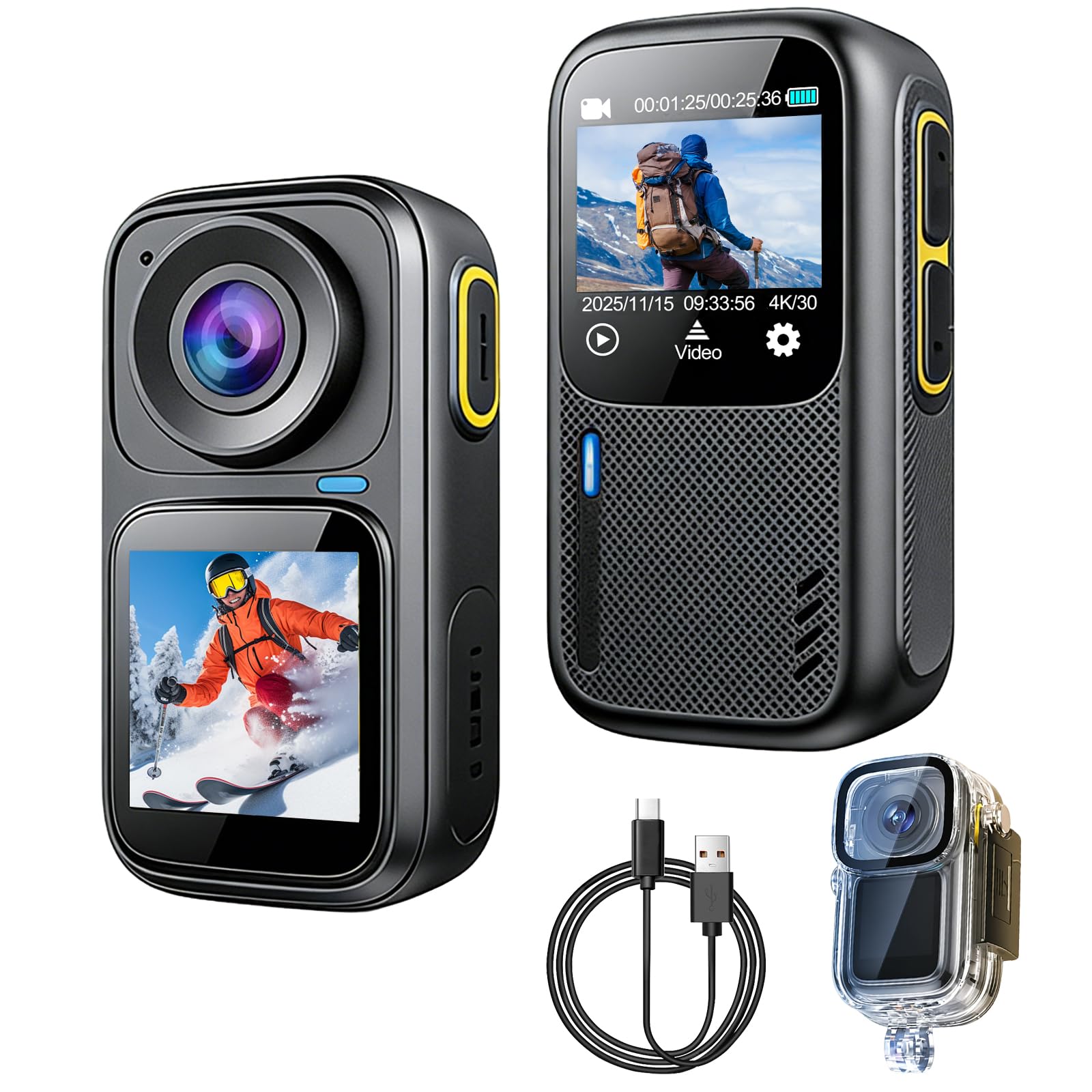Dual-Screen Design: This 4K action camera features a 1.3" front screen and 1.3" rear screen.