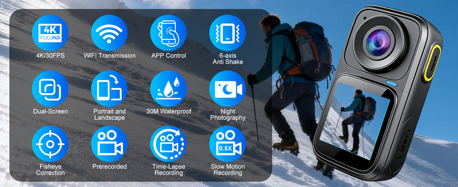 EIS Anti-Shake: This action camera has an advanced six-axis electronic EIS anti-shake function that greatly improves the stability and smoothness of your videos.