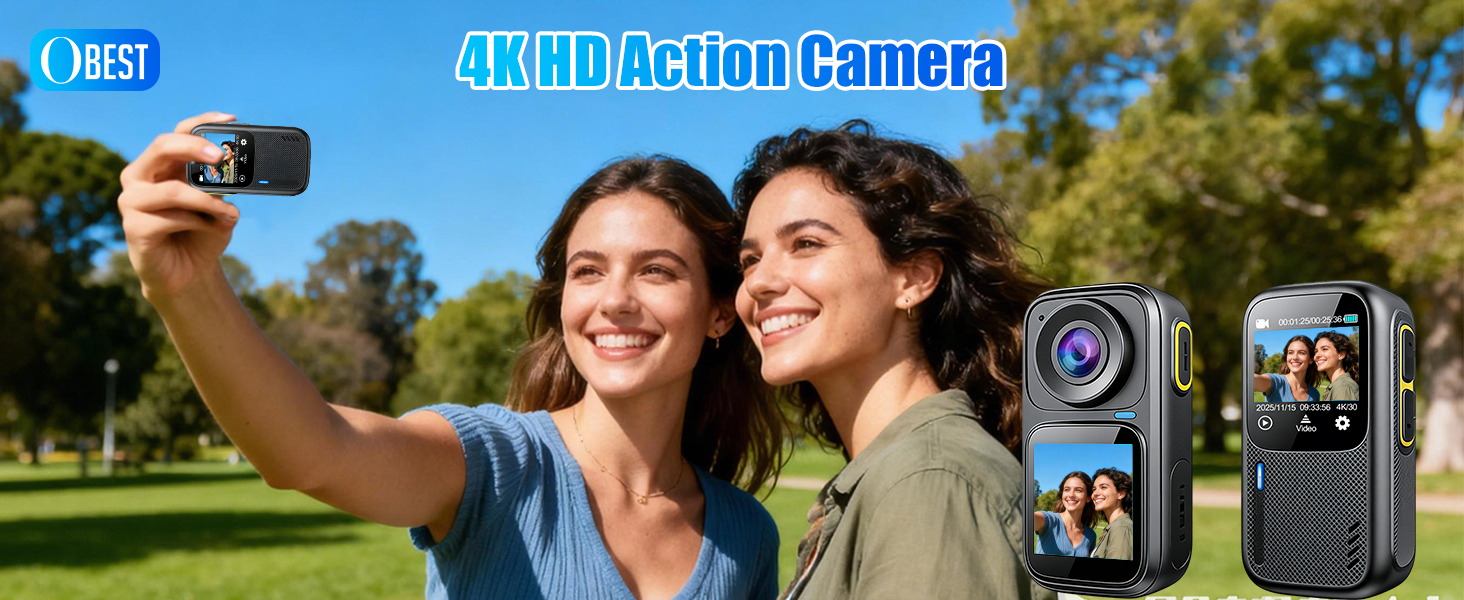 OBEST 360 Action Camera 4K 30FPS Dual Screen POV Body Camera