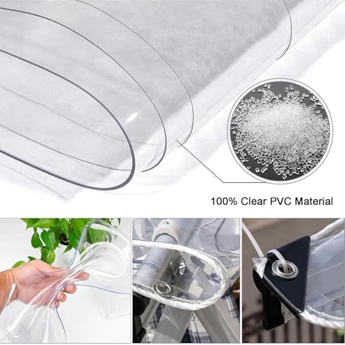 Wide Range of Uses: This transparent tarpaulin blends visual appeal with practical functionality, making it ideal for various applications including gardens, pergolas, patios, porches, balconies, gazebos, carports, tents, camping, and canopies.