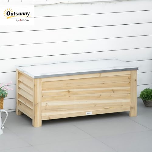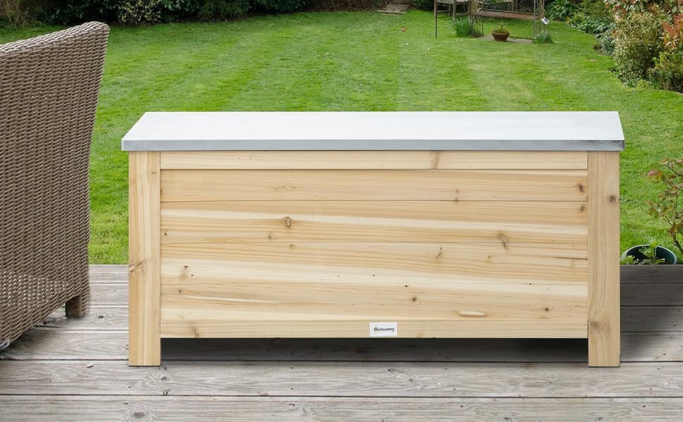 Deep and wide, this spacious chest from Outsunny is great for keeping your garden tidy where needed. Made of solid wood, it's stable and easy to maintain and features safety hinges, so fingers don't get caught when opening and closing the lid. A galvanised metal top resists rust to keep it in excellent condition. Check out this outdoor storage box from Outsunny and get a place to store your outdoor tools.